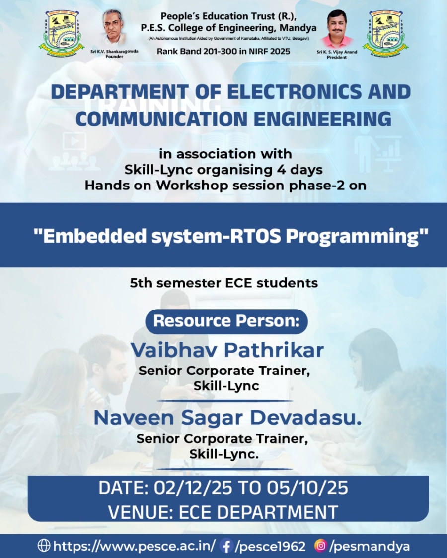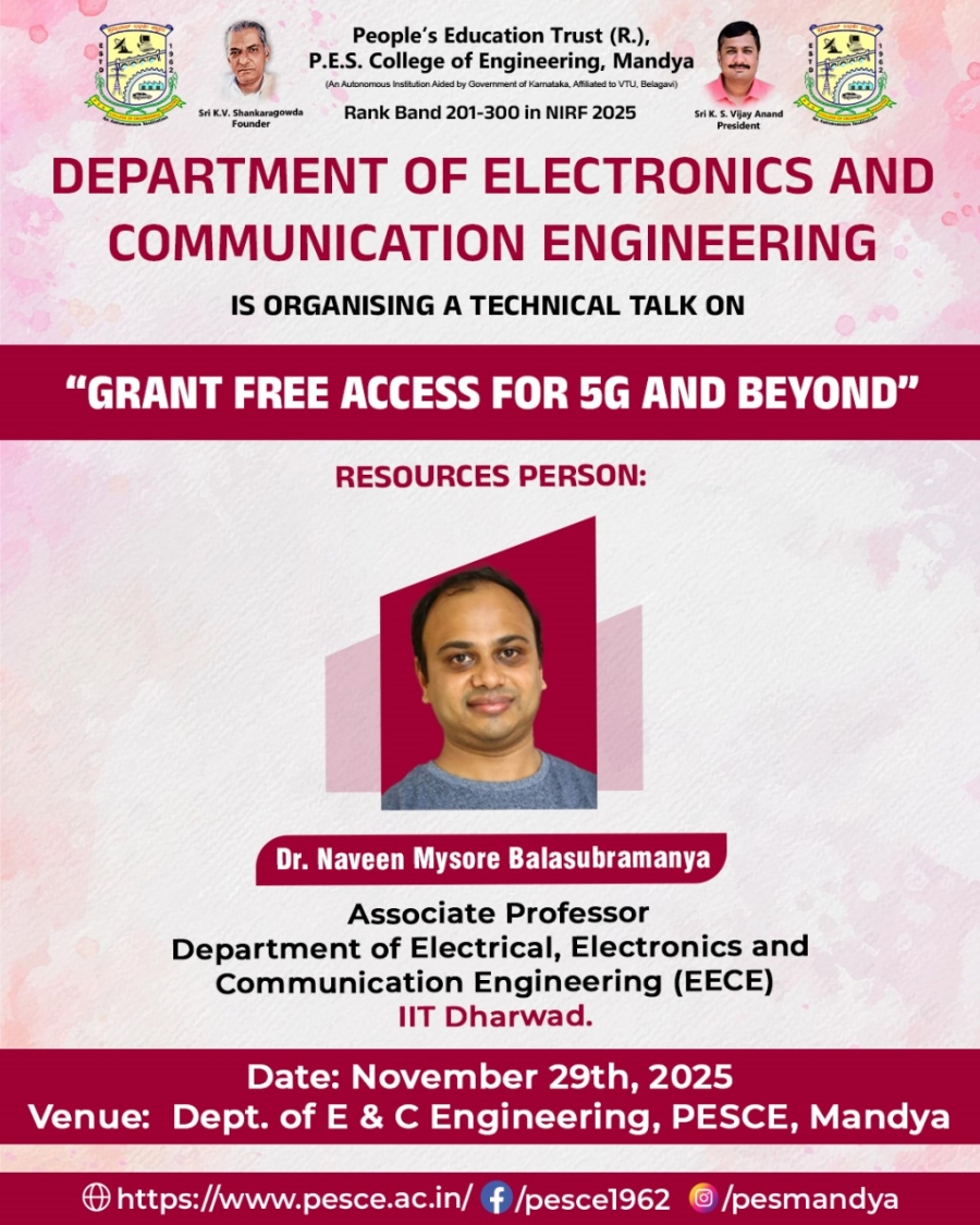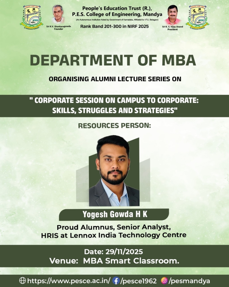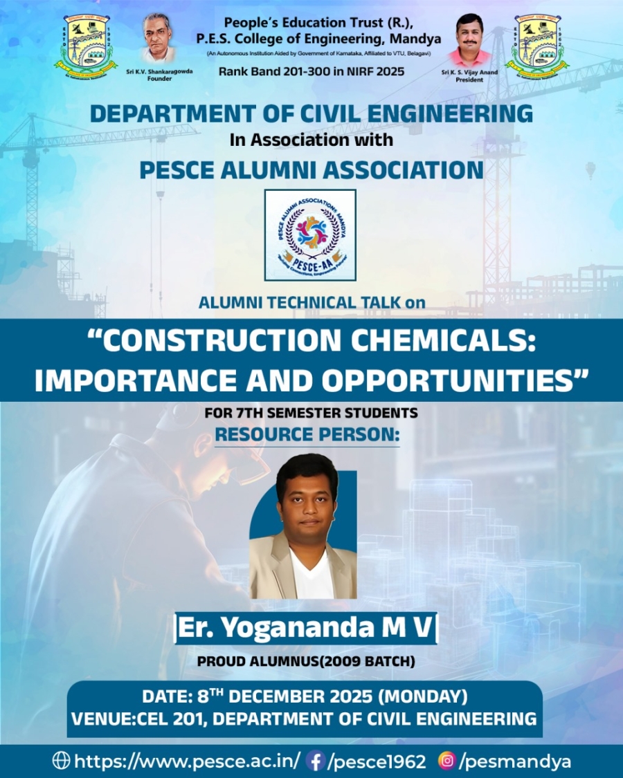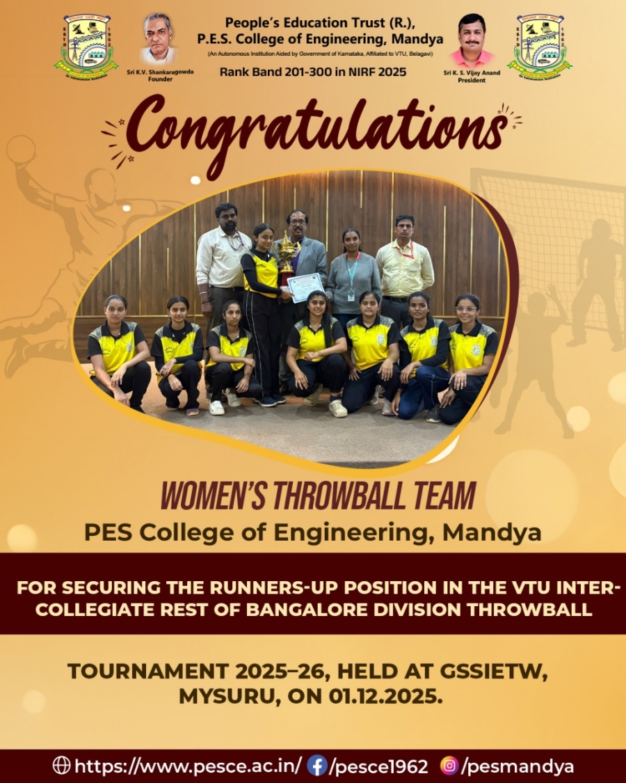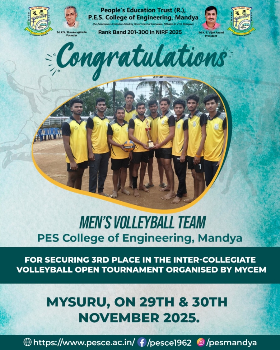 P. E. S. College of Engineering, Mandya was started in the year 1962 by People’s Education Society®, Mandya under the leadership of Late Sri K. V. Shankara Gowda.