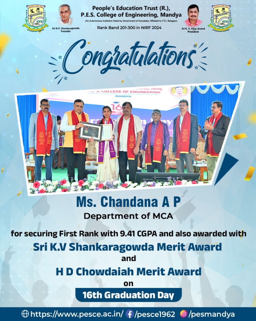 The Department of Master of Computer Applications (MCA) at PES College of Engineering, Mandya, was established in 1992 and is recognized as one of the earliest departments in Karnataka to introduce a postgraduate program in Computer Applications. The department offers a Master of Computer Applications (MCA) program, thoughtfully designed to build a strong foundation in core computer science principles and modern software practices.