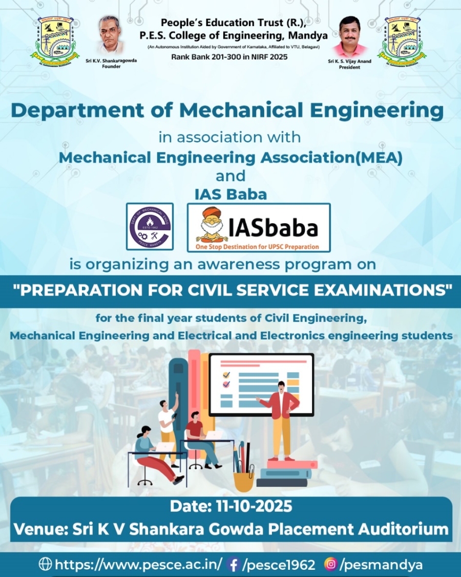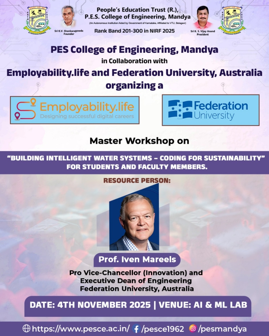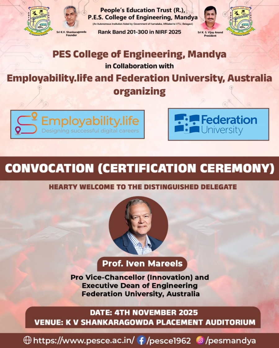 P. E. S. College of Engineering, Mandya was started in the year 1962 by People’s Education Society®, Mandya under the leadership of Late Sri K. V. Shankara Gowda.