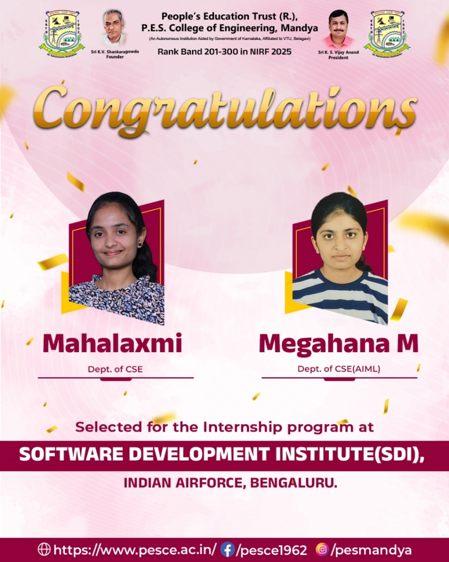 "I am very fortunate to write my experience in PESCE,From the starting day to the last day of my college PESCE has made all my days memorable,Right from diversity to academic excellence PESCE has it all,at last my special thanks to the teachers who have always been the support system for all the students,thank you PESCE for making the future bright of all the students who been part of PESCE....!".